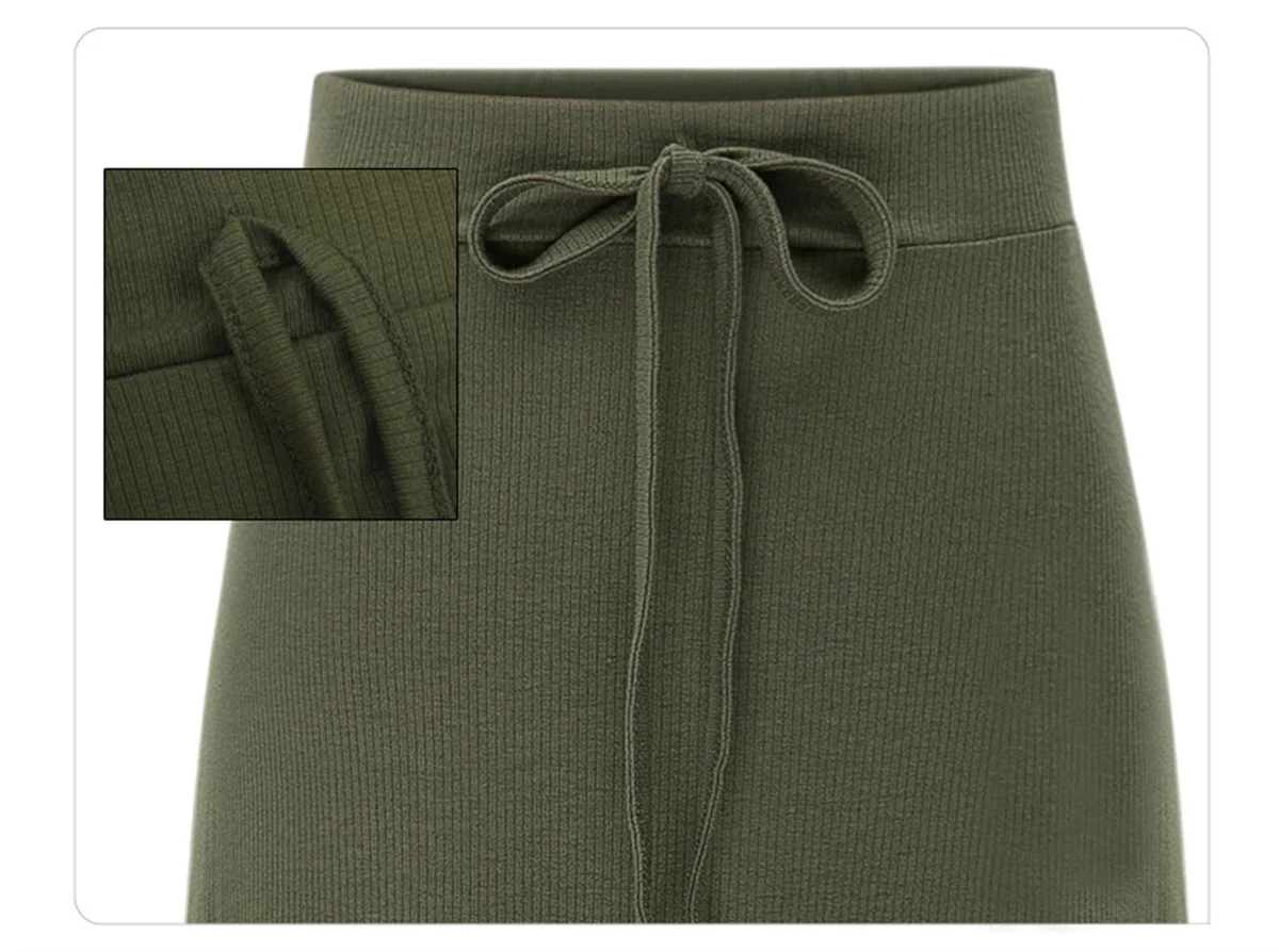 Fashion Lace Up Straight Skirts Women Solid Knitted Autumn Spring High Waist Short Dress Split Casual Street Skirt Chic Clothes