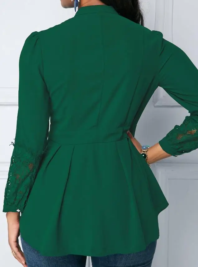 Women's Elegant Lace Blouses European & American Single-Breasted Open-Neck Stitching Fashion Chiffon Office Shirt Top for Women